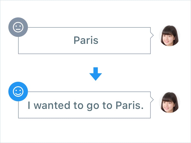 予測がつかない状況で話せるか、パッと答えられるようになるための練習をします。単語だけの回答ではなく、文章で答えられるように強化していきます。