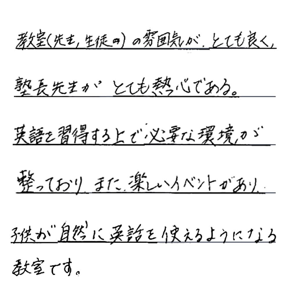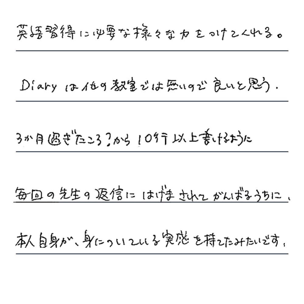 成果は何を目標として設定するかによって変わりますが、一般的な英語力の成長ステップとして以下の段階を見てきました: 1. 英語が聞こえるようになる段階2. 簡単に事実ベースの質問に答えられる段階 3. 自分の考えを主張できる段階4. 論理的視点を持ち、相手に配慮しながら考えを伝えられる段階 テストで高得点を取ることや英検の取得は、確認プロセスとしては役立ちますが、それだけで生徒の成長を測るのは難しいです。そのため、私たちは毎週親御様に動画をお送りし、定点観測を行います。この過程を見せることで、歴史を振り返りながら成長を実感していただけるように設計しています。