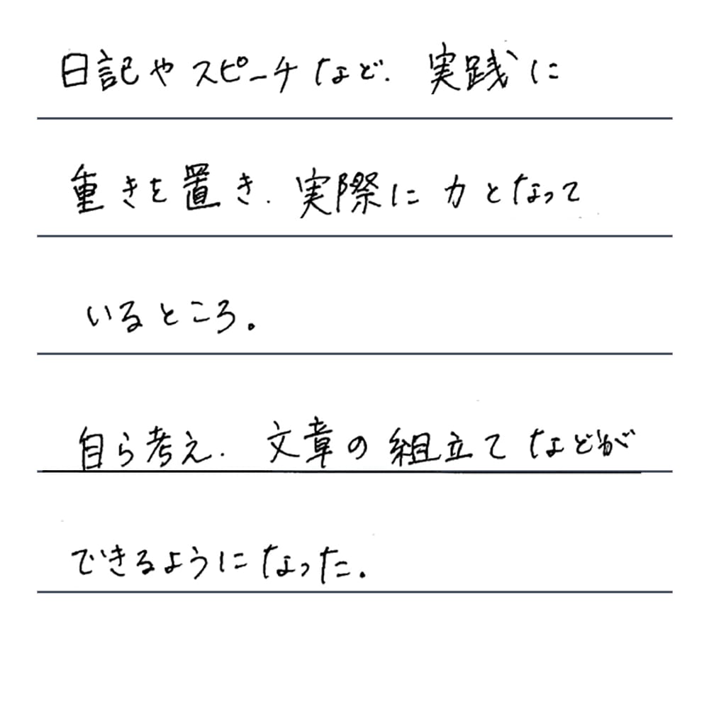 パッと聞かれて英語で答えることや、自分の考えを資料にまとめてプレゼンテーションするぐらいまで成長しています。